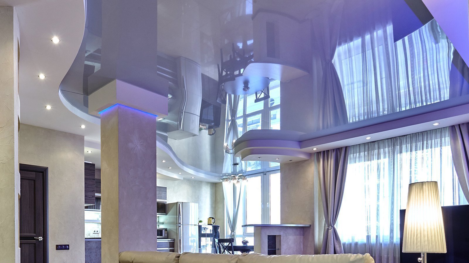 Натяжные потолки с глянцевой фактуройУ глянцевой фактуры самое большое количество оттенков – более 250.от 12 р /м² + монтаж